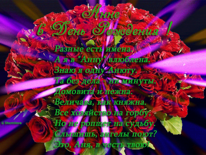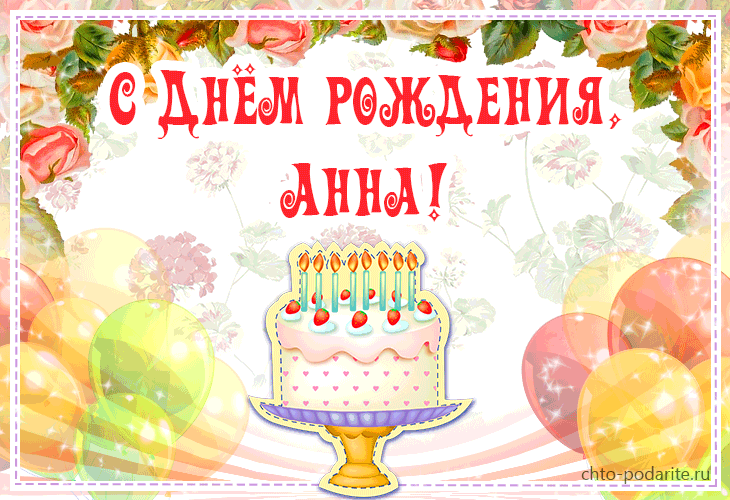 тёти по имени Открытка для Анечки — «Желаю, чтоб каждый денек Открытка ко дню дню рождения Анны. Яркая, мерцающая gif открытка ко дню рождения со стихами — «Анна — ласковое имя, пусть сбываются мечты!…»Картинка для Ани рожденияАнна Васильевнагиф картинки ко совершенно бесплатноскачать картинку Картинка для Ани друзейКартинка с днём собраны поздравительные анимационные
