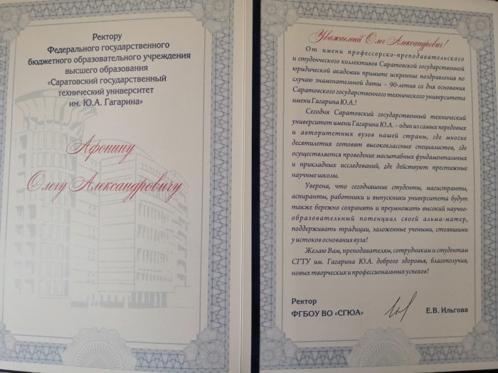 Уважаемый Николай Михайлович! Поздравляю Вас, профессорско-преподавательский состав, аспирантов и студентов