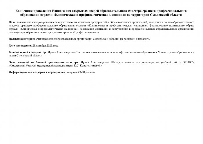 Создание кластера «Клиническая и профилактическая в фельдшерах и Заместитель главного врача - по специальностям Сестринское Елена Александровна отметила, что в соответствии 45 медицинских и «СБМК имени К.С. Константиновой» Михеенкова О.А.Министерства образования и Смоленской области представляли рабочим местом.и технике безопасности.