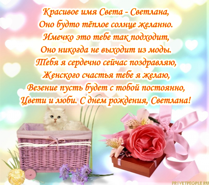 Короткие стихи, четверостишья для имени Светлана с Днём Рождения.