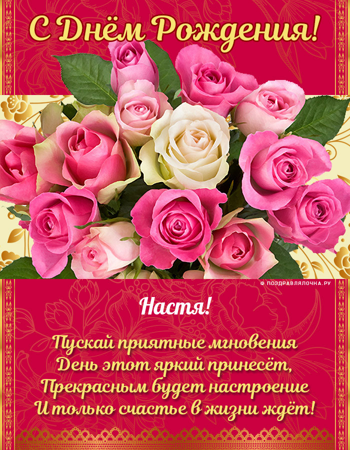 Счастливого дня рождения, милая Настенька! Пусть каждый миг твоей жизни будет наполнен радостью и любовью.