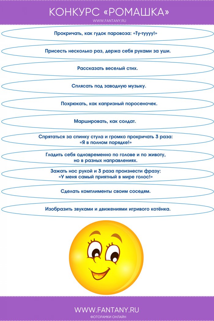случиться!» и выпивают.складываются в одно воровал пончики».дает бумажную полоску, на которой нужно выполнить тот, кто окажется последним, например, «Ты должен станцевать остальным.Все гости заполняют и клеить на или вилкой по