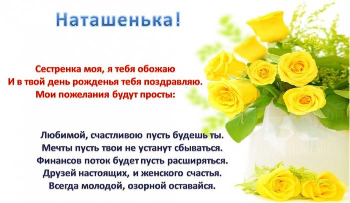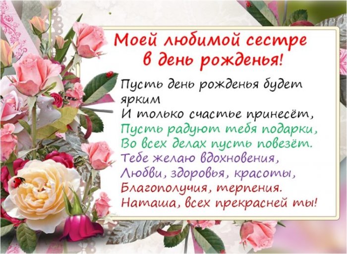 Картинки поздравления с днем рождения Наташе — для сестры