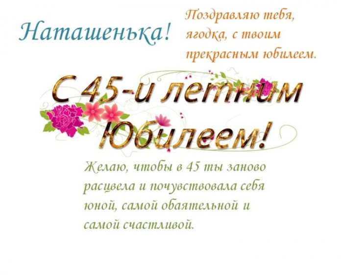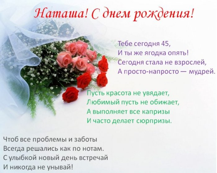 Картинки поздравления с днем рождения Наташе — на юбилей в 45 лет