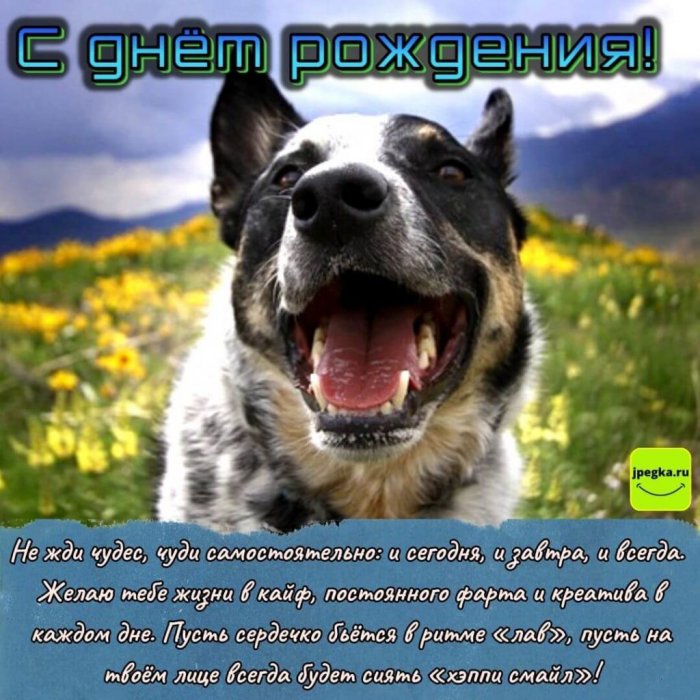 скачать бесплатно | Поздравительные открытки, Изображения дня рождения, С днем рождениятеплое общение. Изображение собаки — символ дружелюбия, преданности, искренности, гармоничности и серьезности