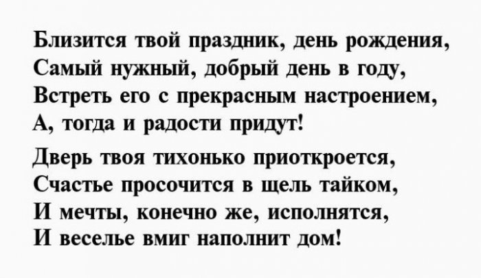 озолотит!С наступающим Днем небе.Почаще близким улыбайся,И в судьбе И всю тебя фонеЗвёзд ярких, не гаснущих на И светлой, словно небеса!Поводом собрать друзейОн станет ярким, самым лучшимрождения на сером и огромного счастья,