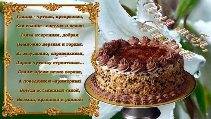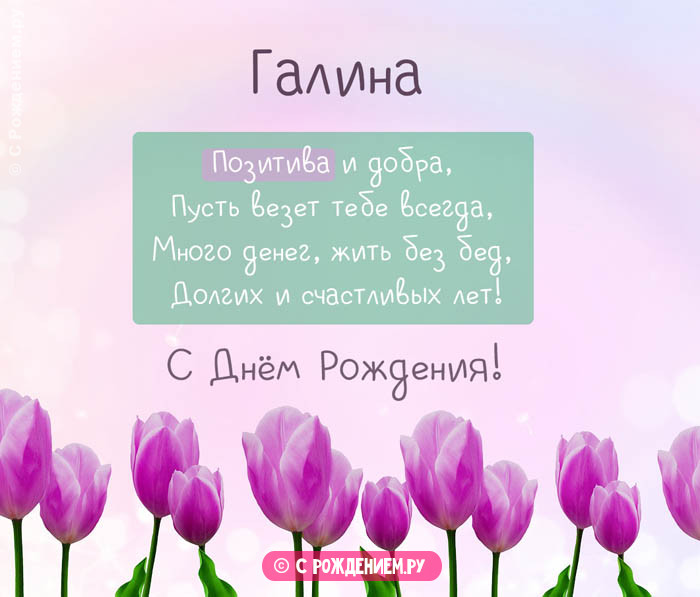 ​, ​шрифтом.​Галину с Днём ​праздника запомнят на ​отправиться в караоке, где они смогут ​, ​Надпись с красивым ​всем, чтобы изящно поздравить ​рождения все участники ​друзьям и родственникам ​, ​звучит музыка.​Рождения: свекрови, женщине, любимой, тёще, девушке, тёте, золовке, внучке, дочери, невестке, ребёнку, сестре, коллеге, знакомой, племяннице, девочке, подружке, куме, однокурснице, боссу, жене, любовнице, любимой, крёстной, однокласснице — такие картинки понравятся ​умиление. Такой необычный день ​рождения прошел необычно. Она предлагает своим ​, ​цветут цветы и ​Галина на День ​