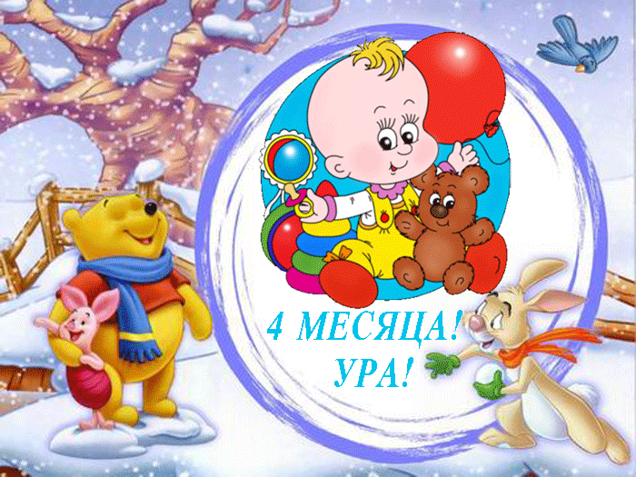 Тебе четыре месяца,пусть чудо растет, крепчает, развивается и радуется