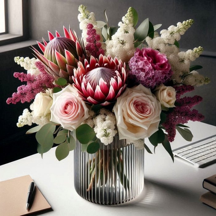 , подойдет сдержанный классический Выбор цветов для компании во многом рождения и с