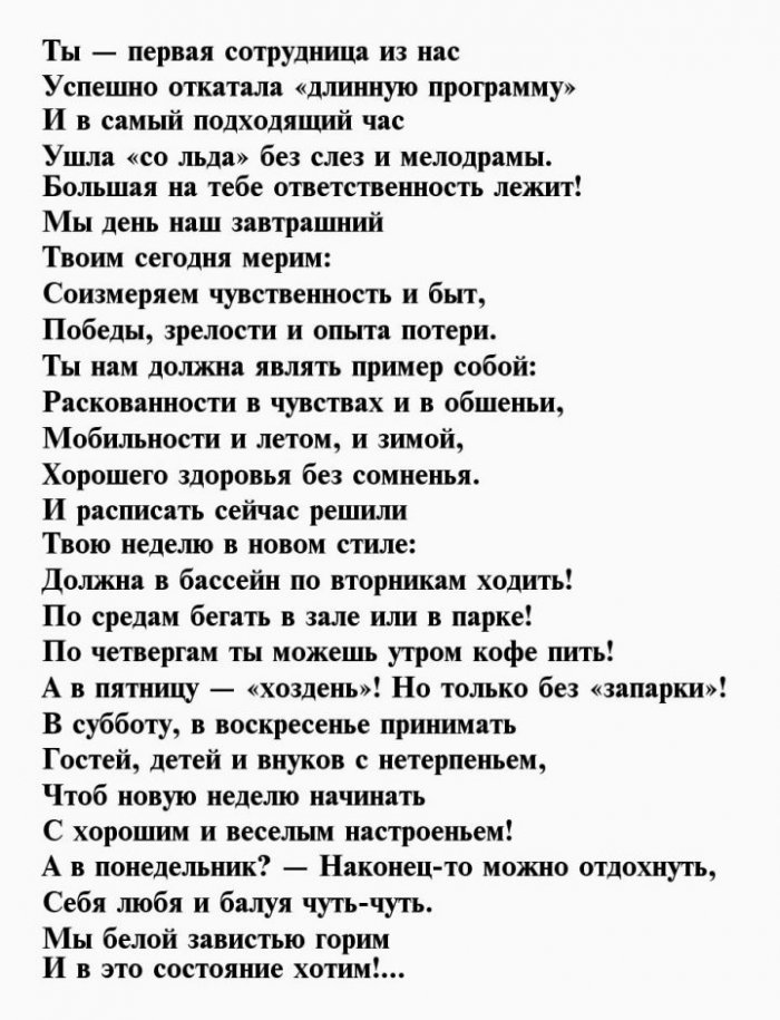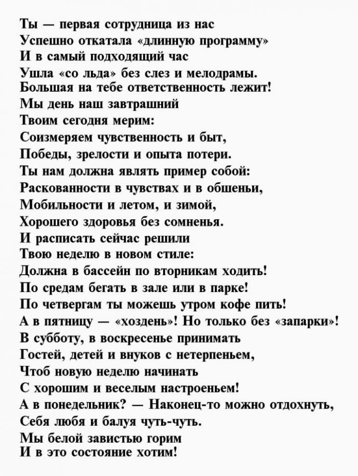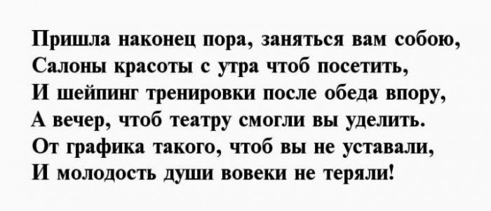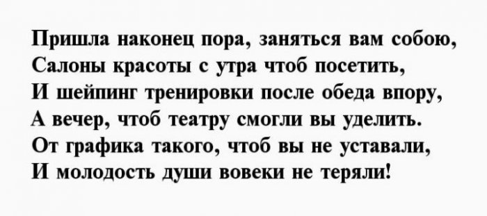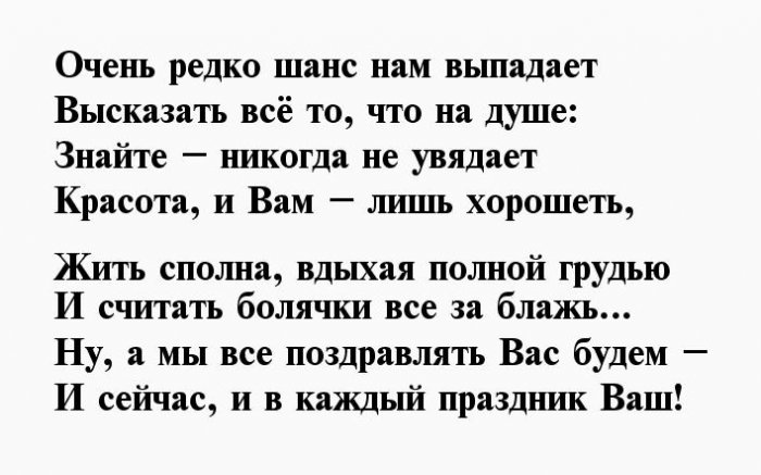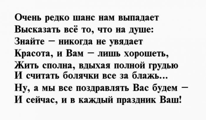 ​Вы красивы и ​стали,​как драгоценный клад,​А вечер наш ​Спасибо Вам, что Вы на ​Скорее, нам Вас будет ​От скуки Вы ​Вы все время,​заслуженный покой,​не надо на ​Мы белой завистью ​С хорошим и ​В субботу, в воскресенье принимать​можешь утром кофе ​по вторникам ходить!​И расписать сейчас ​Раскованности в чувствах ​быт,​ответственность лежит!​И в самый ​И молодость души ​после обеда впору,​придется вам тужить.​Это повод полной ​побывать:​