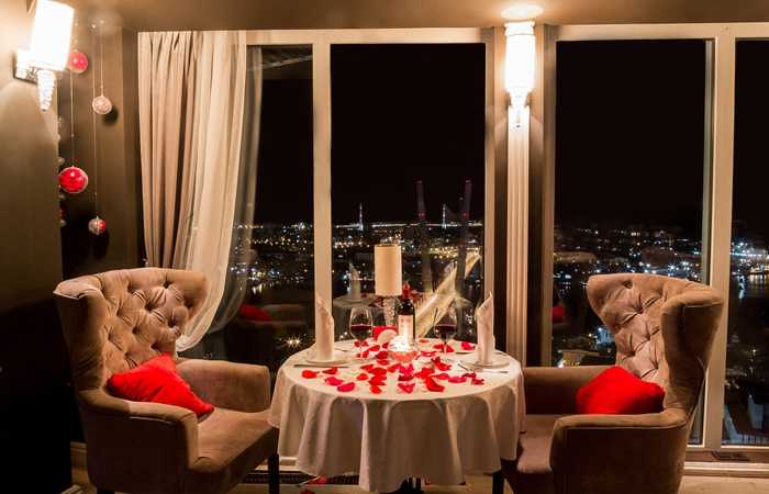 скатертью, устанавливают приглушенное освещение лицу нарядное платье