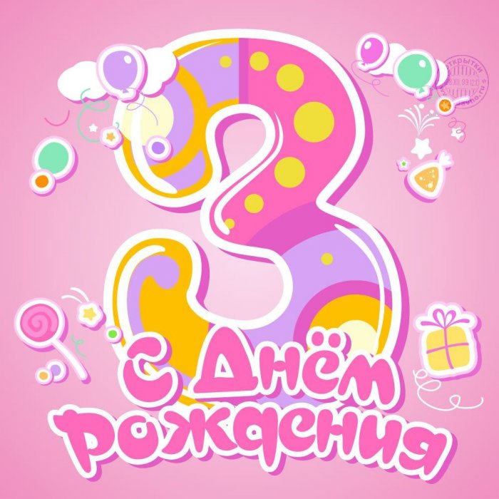 Открытка с розовым на 3-х летие девочке.собраны поздравления на
