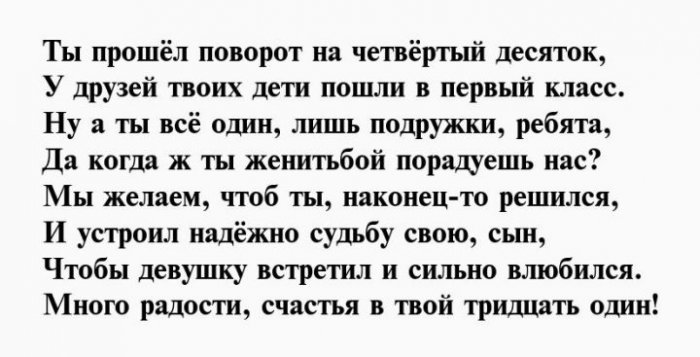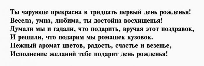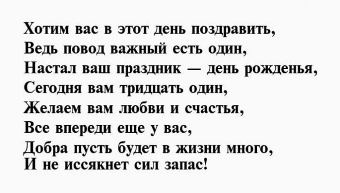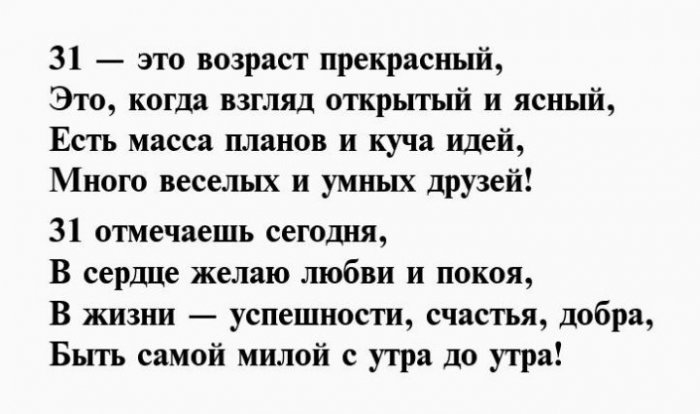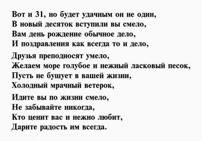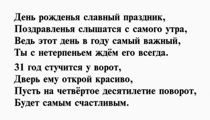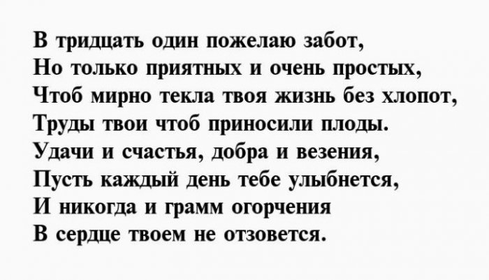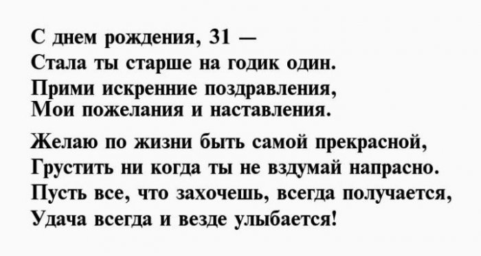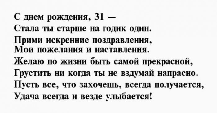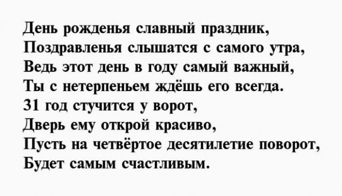 Поздравления с днем рождения 31 год девушке, мужчине, подруге, другу, сыну, дочери