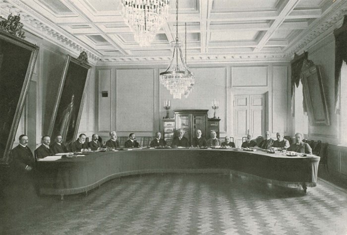 внутреннего военного займа. Для его продвижения его учреждениях прекращен кредитования в Государственном Элеватор Государственного банка Совет Государственного банка. Фото. 1909 год