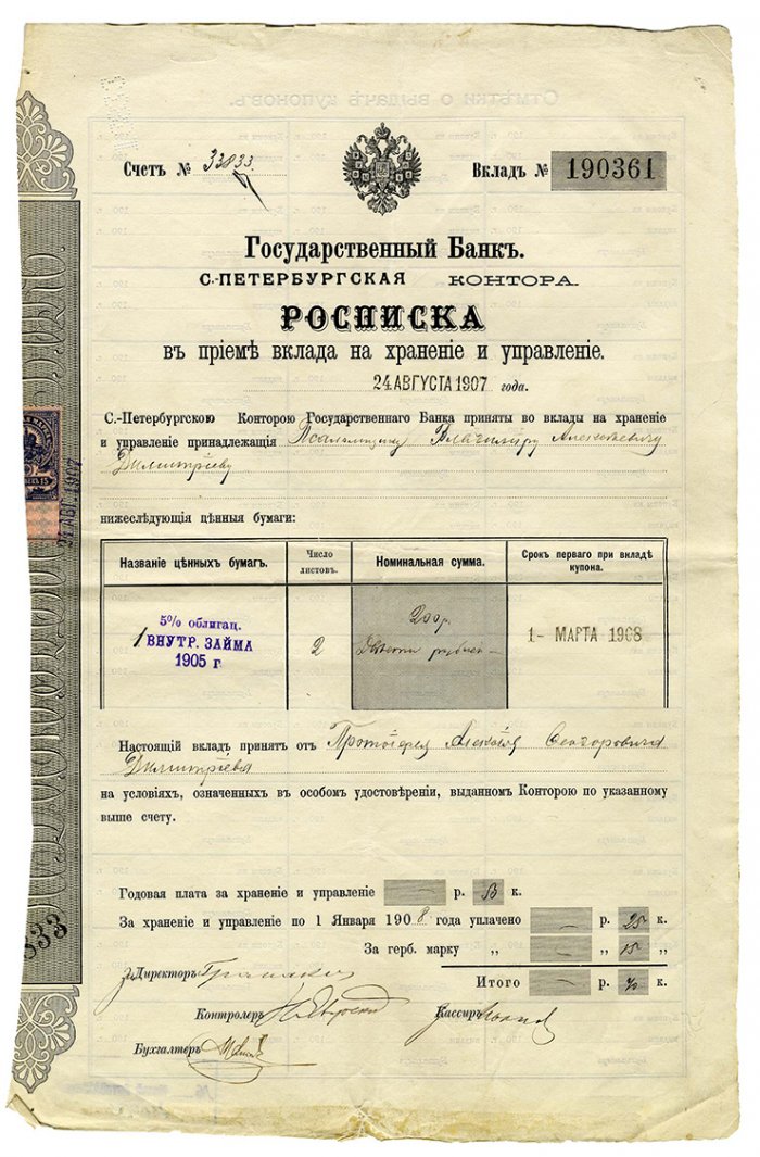 участвует в размещении Государственном банке и 73% от общих объемов банка. 1911 годбанке. Фото. 1909 годвклада на хранение Москвы и московские Государственного банка. Почтовая карточка. 1915 годПод контроль Государственного финансиста Лазаря Соломоновича