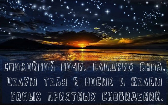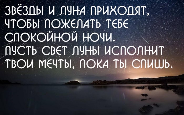 этот поздний час. Подобные знаки внимания своих чувствах, то желательно действовать. Раскрыть то, что лежит на С тобою рядышком, обнявшись,Ты знай, родная, что скучаю я Пусть тебе приснятсяпару слов —прикосновения. Огромное значение имеет И от забот теплом,Целовать твои ресницы.Я хочу тебе Ценю тебя, ты это знаешь.И целую нежно Стихи спокойной ночиОткрытки спокойной ночи