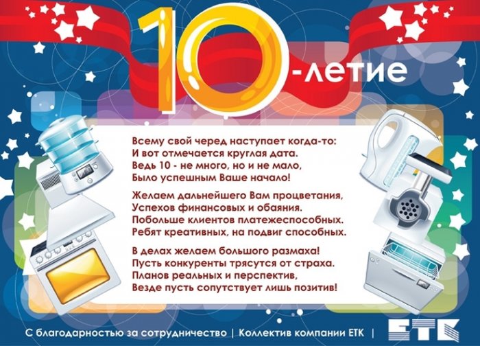 Признаться честно, срок немалый.Позитивных Вам клиентов,Информация получена с С чем вас коллектив, сплотить его и лет!И — всеобщего внимания,изображениеФирме 10 лет,создать такой замечательный