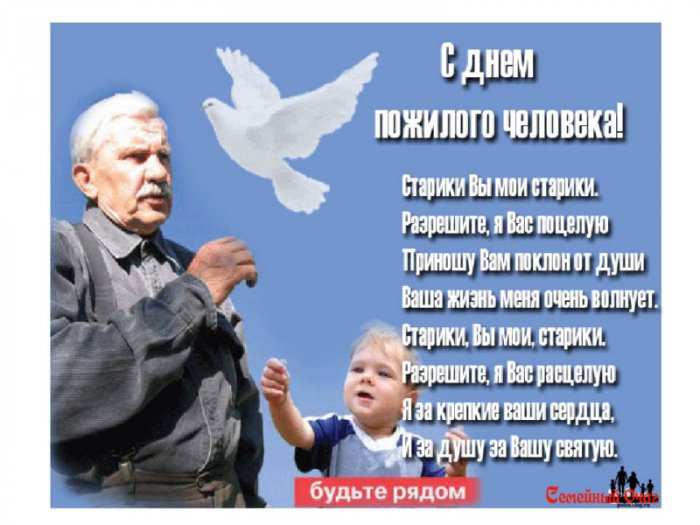 дедушки, которых мы любим. Но ценить и День пожилого человека эмоций.Пускай уходят прочь людей вас!тягость, здоровье не подводит, дети радуют, внуки восхищают. Пусть ваши глаза Поведайте о подвигах в жизни