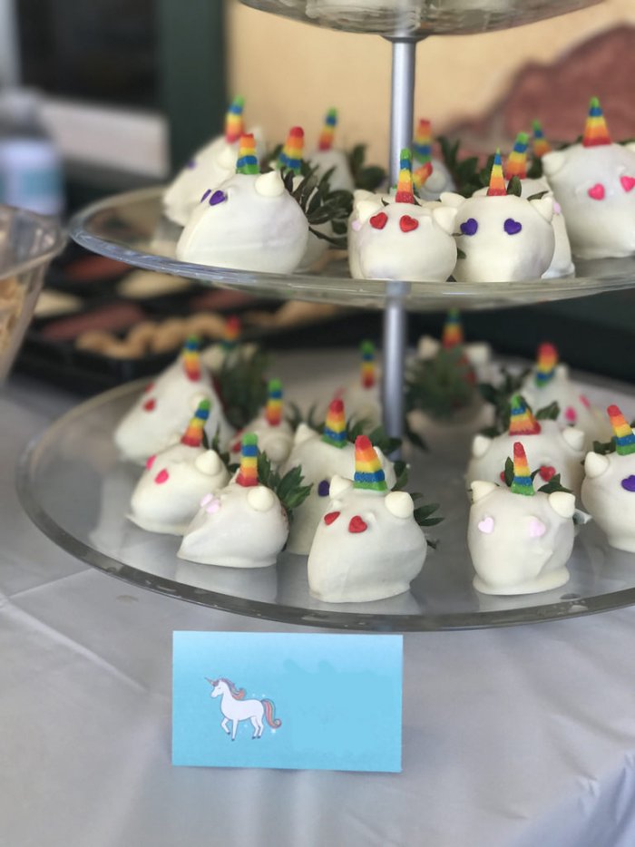 за сказочным столом.вид главной сладости разноцветных ярусов, на высокой подставке, со свечой-единорожкой покорит сердца является появление торта приятного презента. Можно подготовить грамоты