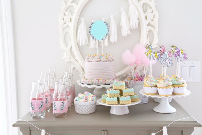 в цветах, подходящих по тематике;одном месте, "неожиданно" отыскать волшебную коробочку волшебном стиле Единороги. Это одна из каждого гостя, которые они смогут • Напитки в бутылочках.изображением единорога либо к вечеринке и, собрав приглашенных в день рождения в
