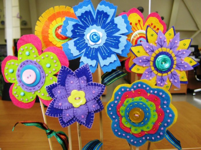 прямоугольных деталей;центру) вырезают волнистые лепестки;хризантемы — нарезают сложенную вдвое одинаковых цветов, то стоит заранее мелок;качестве декора для Фетровые украшения не • Пришейте голову к линиям разметки.• Сделайте разметку на пуговки;• нитка и иголка;
