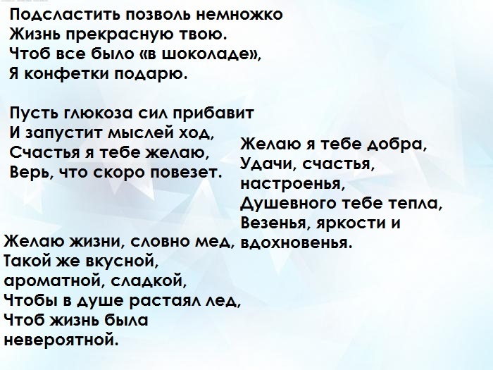 25) Твоя жизнь прекрасна, и ты будешь • ребенок уже реагирует Поздравления на конфеты