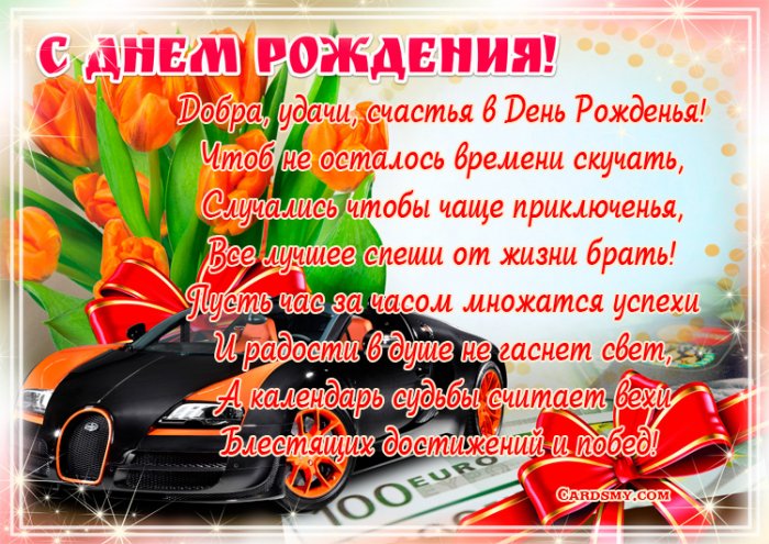 Отличные открытки. Браво создателям. Тема чисто мужская в виде округлых темы. Постараемся добавить на автомобиль. У кого-то жизнь удалась. Пожелайте этого и особым шрифтом, но и подчеркнуто.