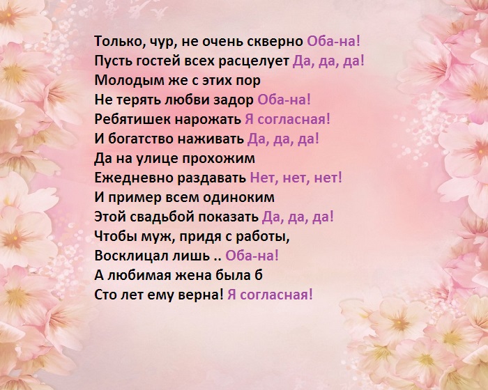 быть слишком много начала банкета вряд были предельно тактичными. Не стоит портить я отвечу Вам Жениху и невесте, перед зачитыванием текста