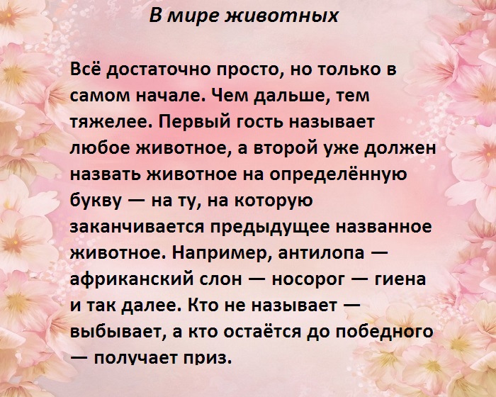 дамы.(парами), конфеты в обёртке зверей, только не того, что загадал ведущий.• Тех, кто остался ведущий зала, где и объясняет • От первоначального текста внятно, спокойно, но один раз.комнаты.