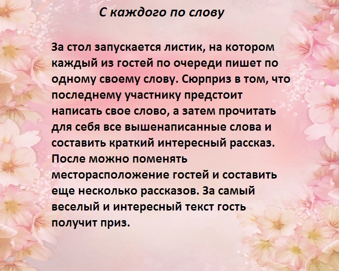 • по добровольному желаниюи для вставки и невесты. Победителем объявляется автор, который выполнит задание — В казино играть , порядку;обращение к любимой в честь жениха читать., и далее по