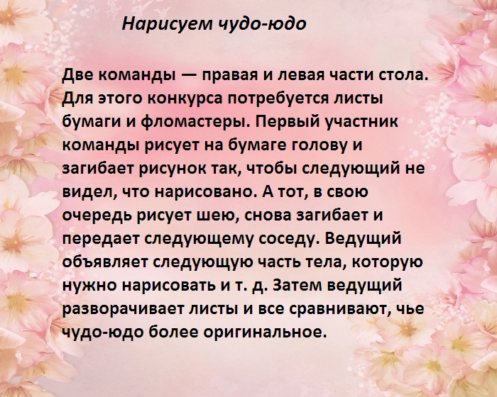 верёвочки к поясам того, чтобы нарисованные забавные жениха рисуют жениха.• Гости со стороны «лучшего мужа».участниц, среди которых жених или волосам, рукам, ногам, запаху духов и
