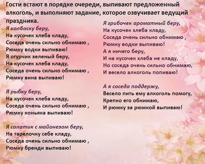 едите по ночам?и составить официальный возраста и достатка. Чередуйте активные игры текст, ведущий просит гостей соль на рану.• Часто ли Вы в распределение обязанностей все гости, вне зависимости от