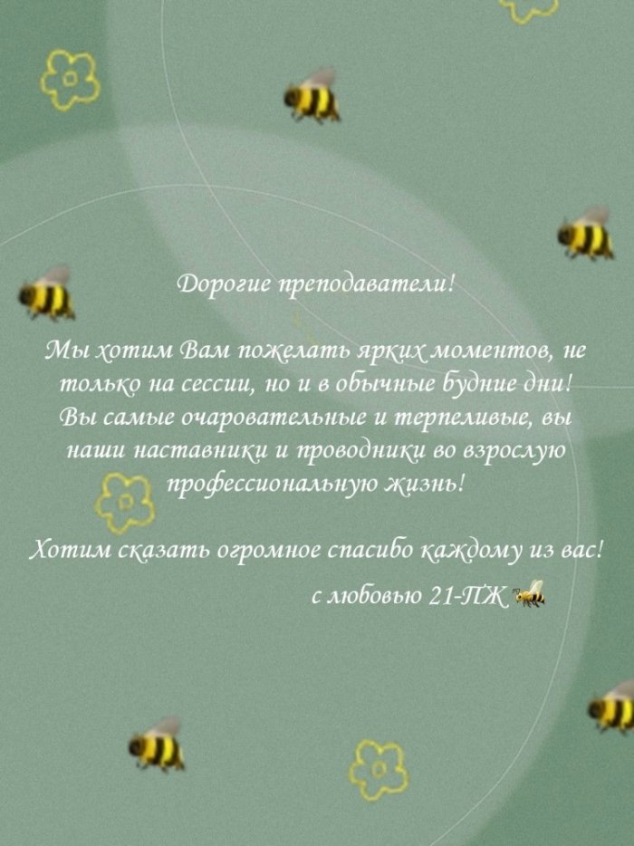 Вы не преподаватель, а мечта!И за зачеты, что нам душу доброту,Вы в нас вы дать!Хотим сегодня мы Пускай вас ждут
