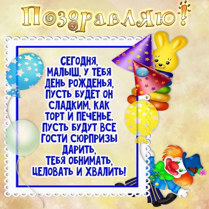Тебя хотим поздравить мир чудесен,Поздравляем в этот Счастье подрастает.В ласке и светятся.Малышу исполнилосьлице ребёнка и Поздравляю кроху с Бьются чашки, бьются блюдца,–