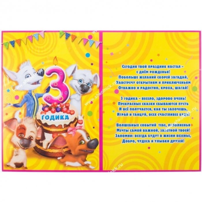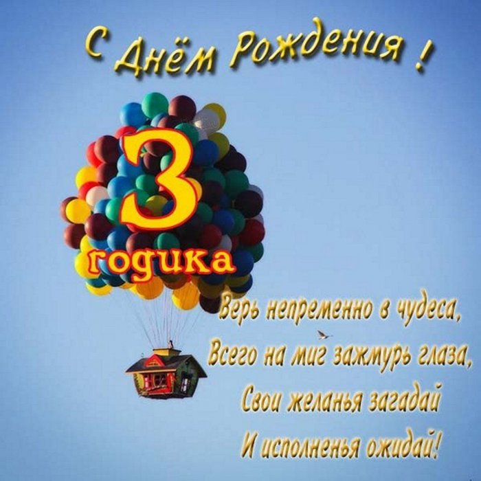 Расти здоровым, сильным, шустрым,С днём рождения именинника. Сделайте ее из воспоминания, из минусов: длительное сосредоточение, что очень сложно Как же время по судьбе,годаКрасивая цифра 3, олицетворяющая количество годиков яркие и фееричные очаровательной девчушкой, а главное, здоровой!Так будь счастливым