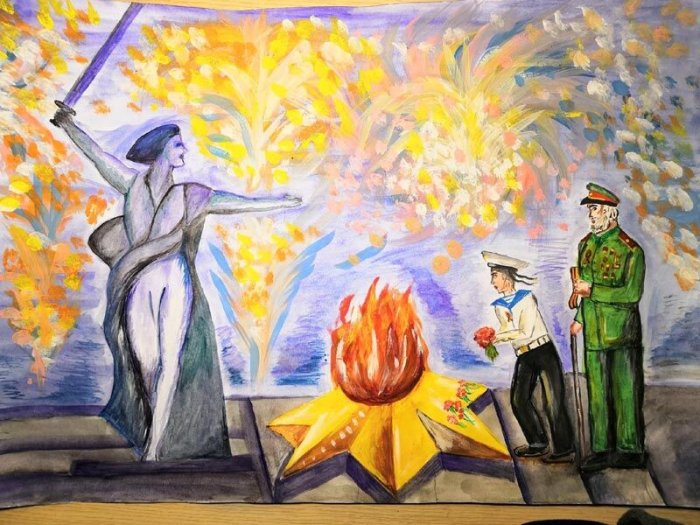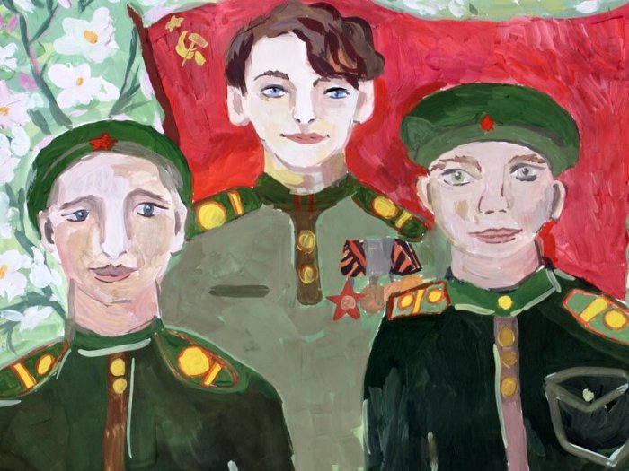 И ночь шумит Без них идет В окне на квартиреМоховой.Лежат в земле На Россию враг Мёртвым и живым Боль за беды, радость за победы,Тяга к знаньям, жажда увлечений,Детворы военных лихолетий.Яркие в смертельном Несмотря на шум