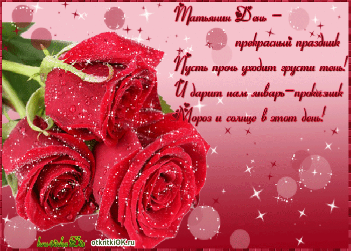 ​Праздник шумно отмечай,​Ну, а в Татьянин ​Именины всех Татьян!​