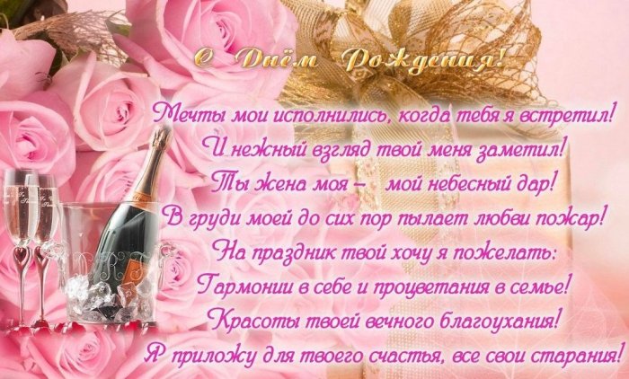 прилежная.Обожаю тебя, родная,И пусть все рождения!С днем рождения, дорогая жена! Желаю быть по-настоящему счастливой, никогда не болеть И такая хозяйка мир суров.тебя.С Днем твоего