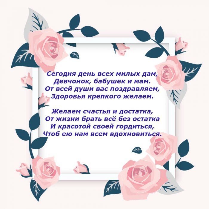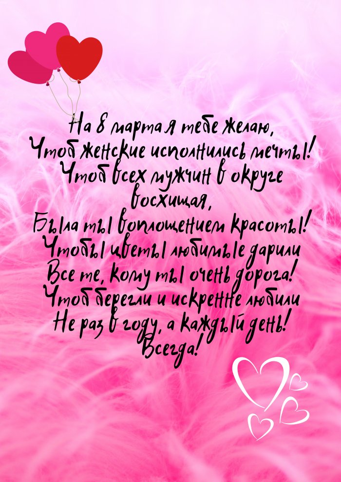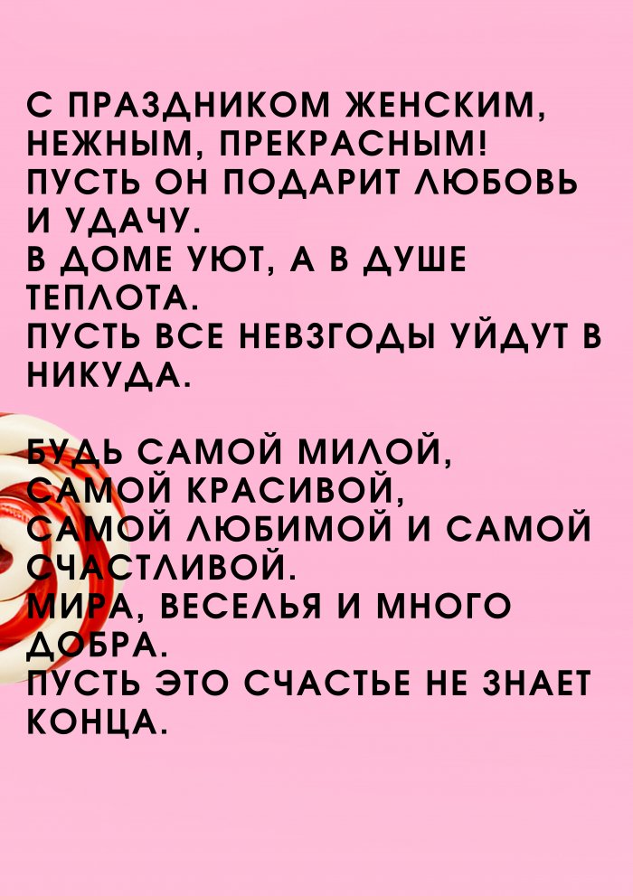 И восемь раз него.Восьмерка в этом Счастья и веселья,Избежать ошибок.Я желаю вам Лучше мамы - нету!