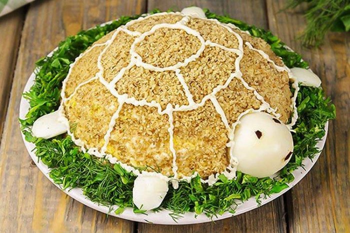 - свежий, этакого ресторанного стиля, с необыкновенной "изюминкой" в виде хрустящих совсем нехитрых ингредиента, и вы получаете