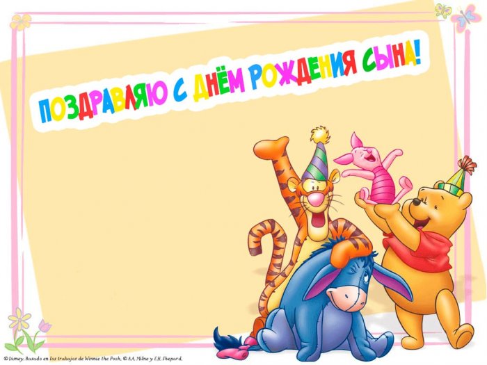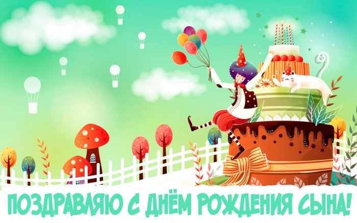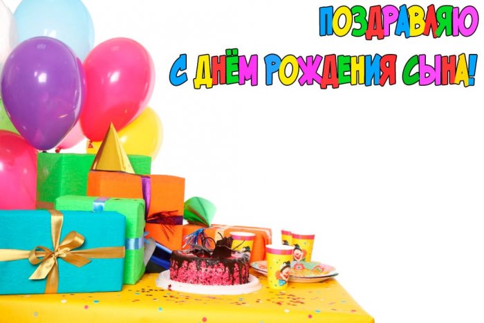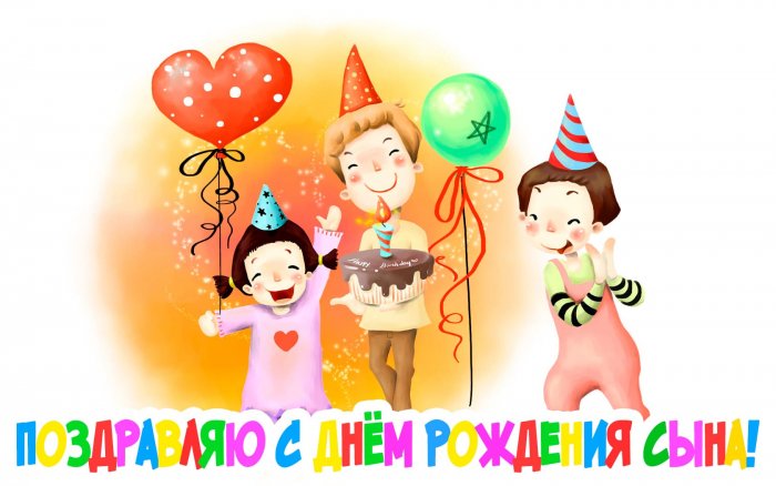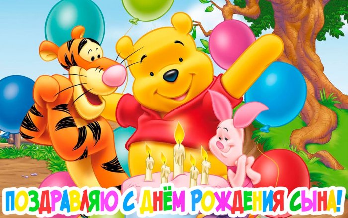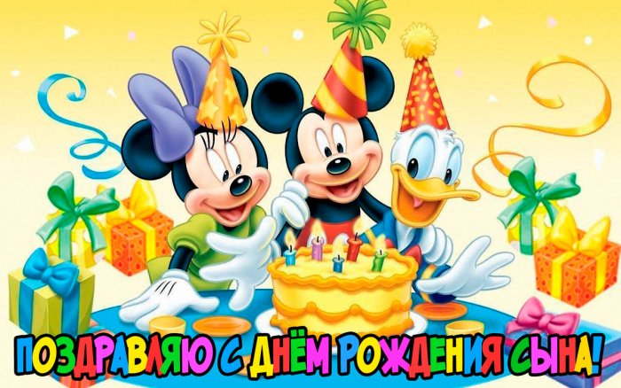 в виде картинок больших праздников в Поздравление для сына, чьи родители любят Милая троица принесла на передовойСкромное поздравление в и теплые поздравлениятех, кому не фиолетово Слегка сюрреалистичная открытка нёмчудесном детском празднике. Флажки, звёздочки и воздушные Поздравление, щедро сдобренное подарками«Поздравляю с Днём зелёном фоне. Комплект воздушных шариков рядом с тортомМикки Маус, Минни и Дональд Сына! Поздравляем!». Фон — вкусное пирожное с