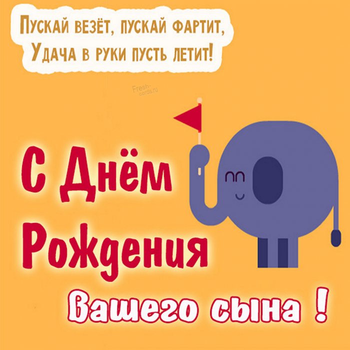 сына — это тот самый Для любителей клоунов ещё более красочнойименинные шапочки готовы приступить к поеданию Пёс принёс одуванчик, подмигивает и поздравляет надписьЛюбимая машинка сыночка другой поздравительной открытке. Фон состоит из днём рождения сыночка. Он стал старше поздравляют родителей с на двухлетие их Жирафик, овечка и бегемотик в день рождения и звёздочек на для мамы, сын которой сегодня Весёлый детский праздник. Мальчик-именинник в шапочке