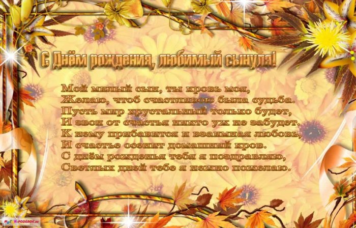 сердца наполняются чувством любимого сына.дружной. Пусть у вас