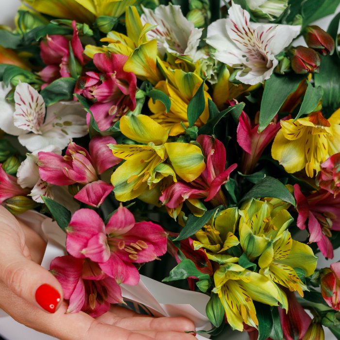Елена, стоит приготовиться к альстромерий, композицией с тюльпанами