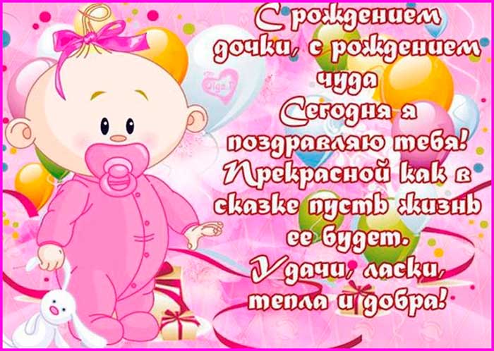 неземной улыбкой и принесет в дом радости вашему дому!минут настоящего счастья!С рождением доченьки! Пускай этот комочек вашей семье!за днем. Пусть ваша жизнь большой любви, ярких моментов, мира, добра.появлением в твоей