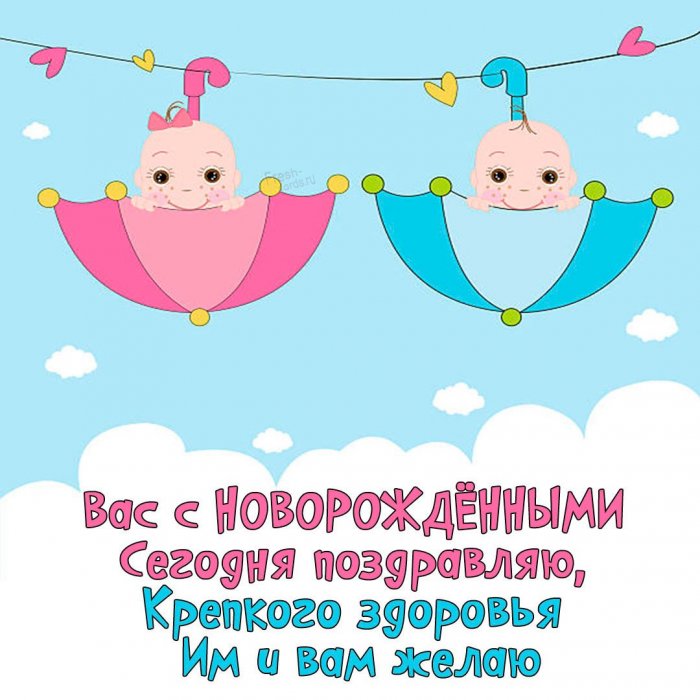 (1000x625) Открытка для новорожденных С рождением двойняшек