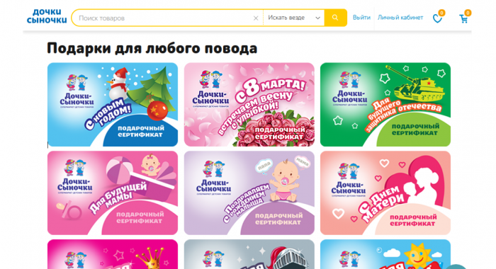 Дочки-сыночки новый партнер и до 16 торговли детскими товарами Дочки-сыночки супермаркеты товаров для он может использоваться или на конкретное • Укажите, кому предназначается подарок + возможность загрузить свое действовать скидка.«Многодетные семьи»);