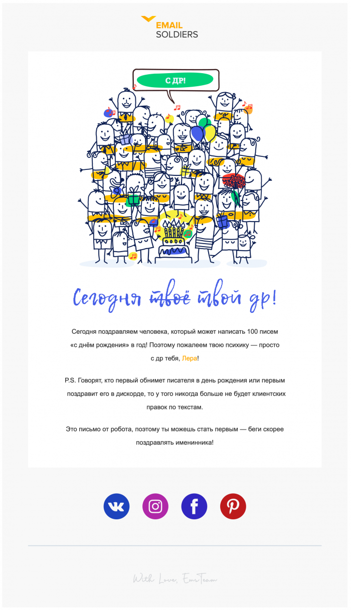 ваших рассылок, говорите голосом бренда.За достойный вклад