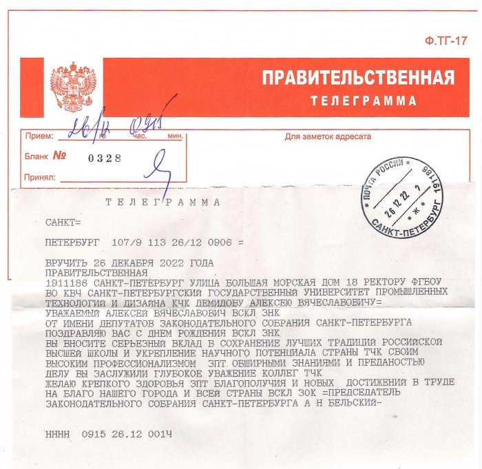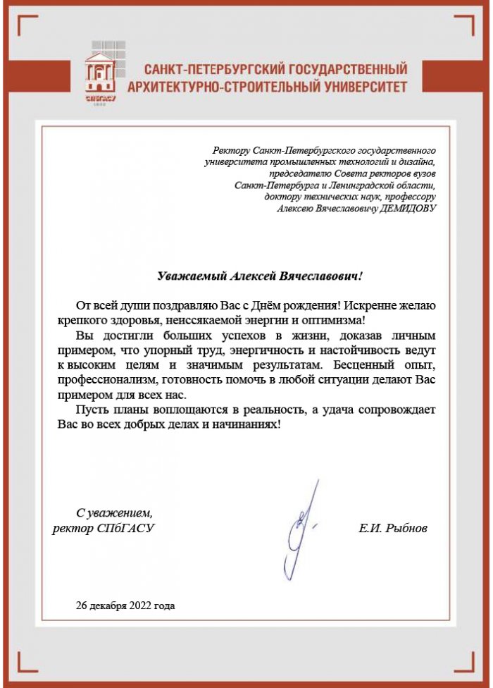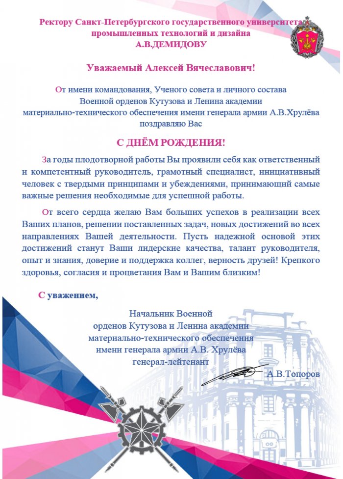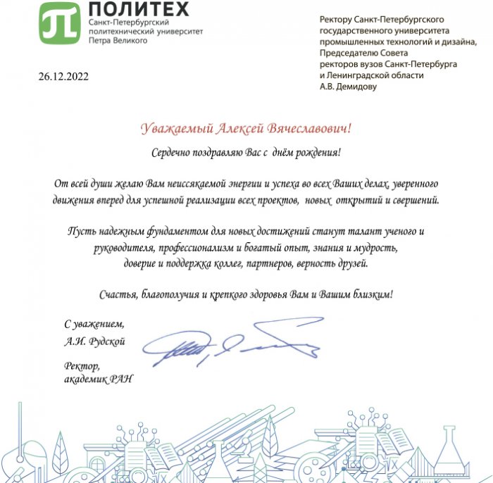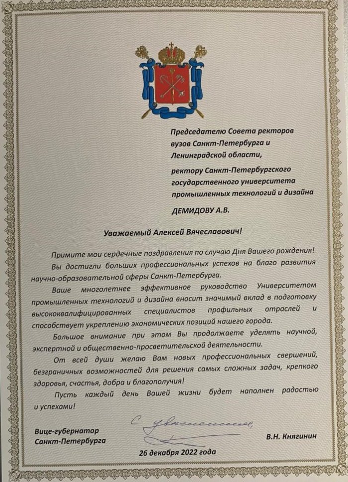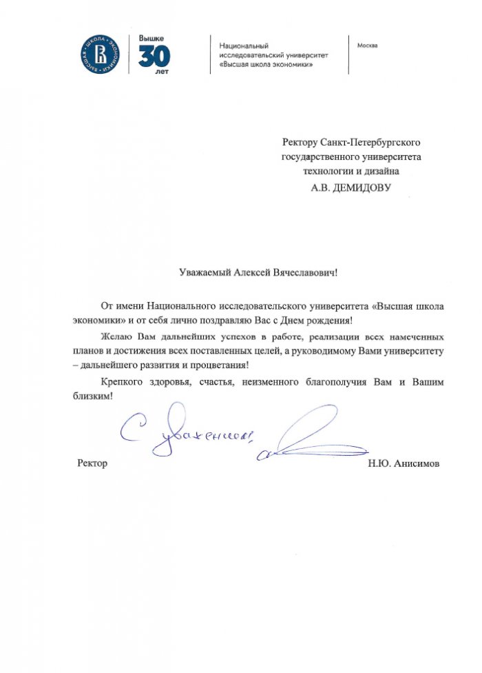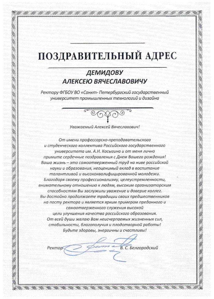 Поздравления ректора и университета им. А.Н. КосыгинаПоздравления ректора и свершениям.большие планы, которые находили бы