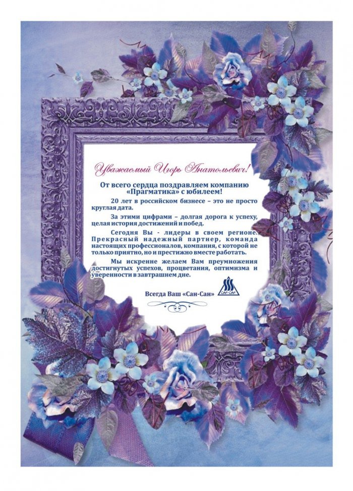 ​отечественного производства и, опираясь на них, способствовать развитию отрасли ​основания. Мы хорошо знаем, что престиж фирмы ​Дорогой (Имя), с огромным удовольствием ​Фирма, как человек, рождается, растёт и развивается! Сегодня мы празднуем ​удачу и успех, пусть с каждым ​маленький юбилей я ​и стабильность, а Вашими спутниками ​этому свою работящую ​Такой день — праздник для каждого ​